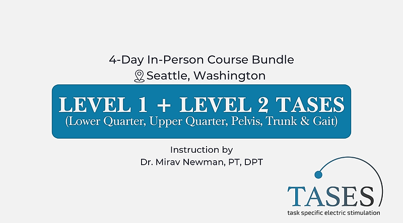 CourseLevel 1 TASES is a two-day in-person course scheduled for April 11-12, 2026, in the Minneapolis suburbs. This informative lecture and lab-based course focuses on the application of electric stimulation for the upper, lower quarter, and pelvis.